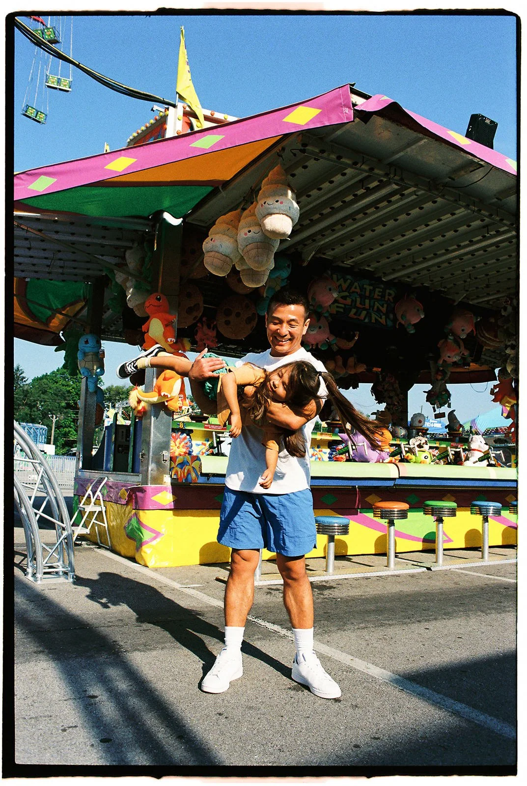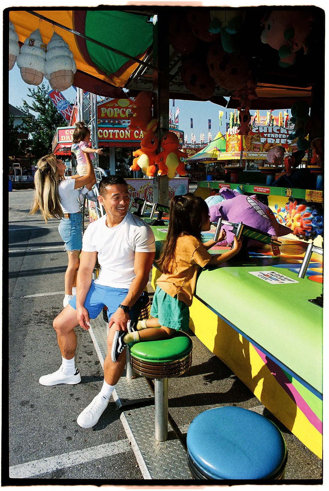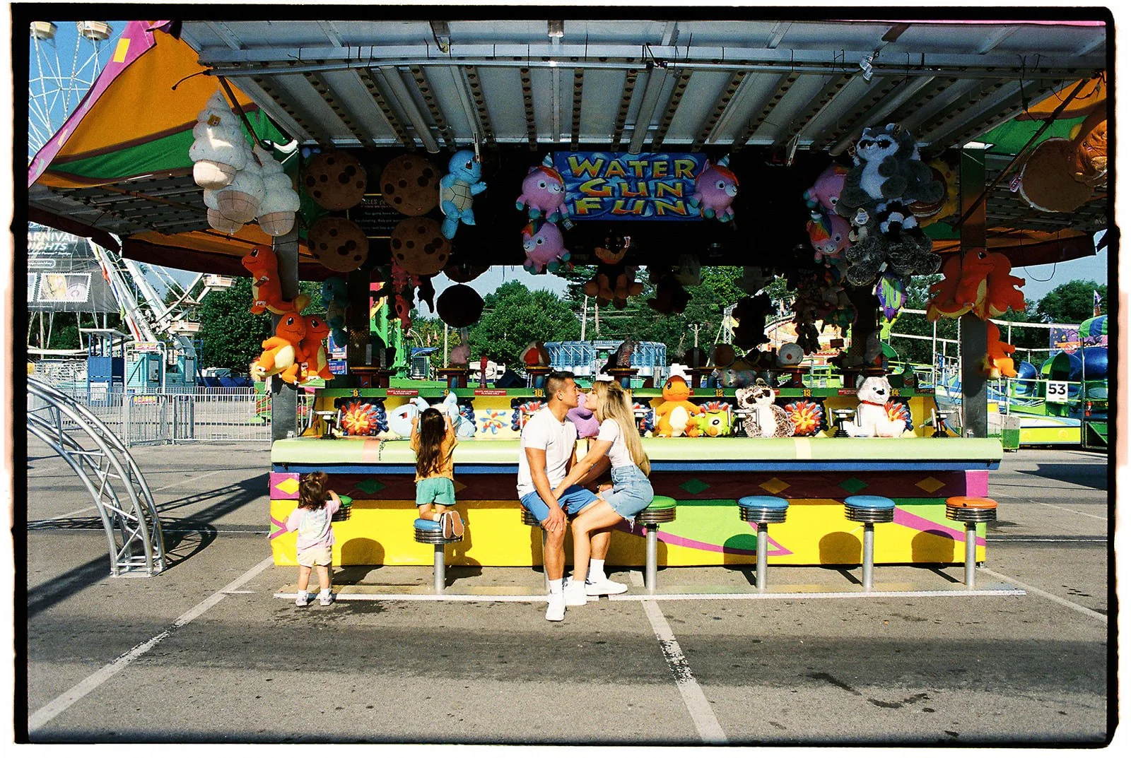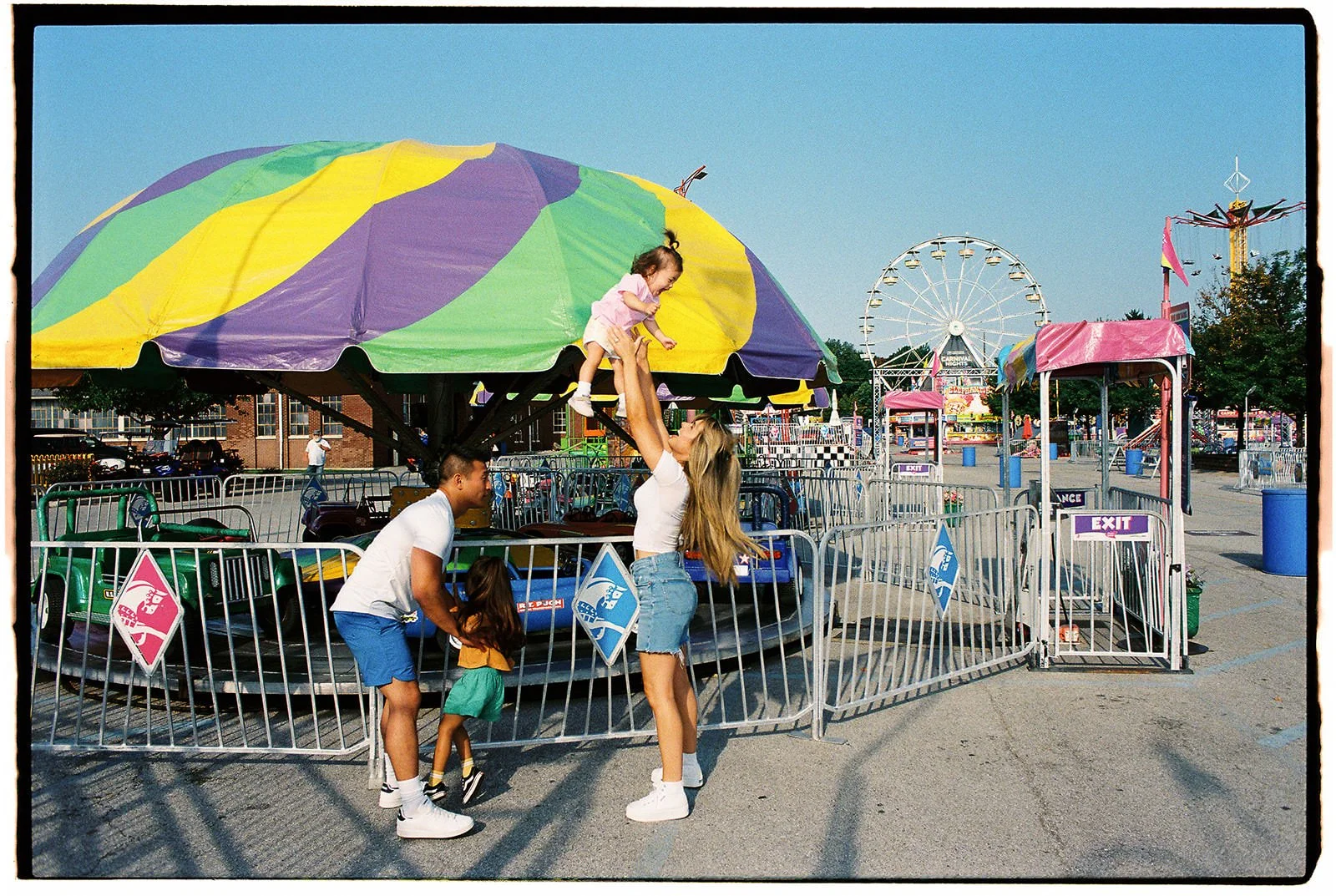In this recent session, we embraced the fair's charm to create heartfelt, film-based family portraits that celebrate the joy and connection of the season. Arriving early, before the crowds, allowed us to capture the essence of the fair in a serene atmosphere, perfect for families seeking authentic moments without the hustle and bustle. Scheduling the session in the morning offered clear, rich light that enhanced the warmth and intimacy of each photograph.