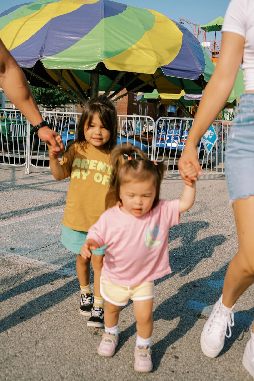 Midway strolls โ Holding hands or sitting atop dadโs shoulders as you walk under string lights + between booths
