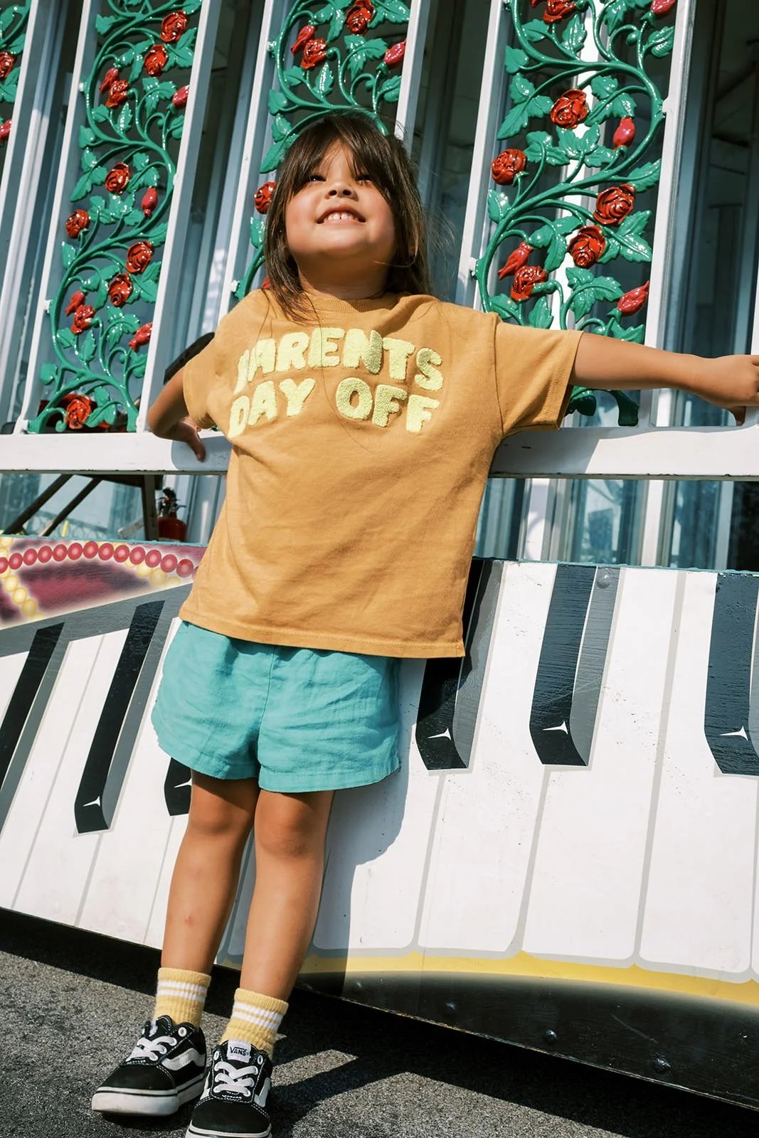 Colors that pop against carnival backdrops โ whites + soft solid colors photograph beautifully next to vibrant signage.